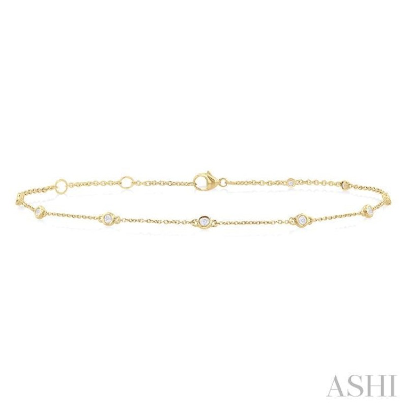 1/4 ctw Bezel Set Round Cut Diamond Station Anklet in 10K Yellow Gold