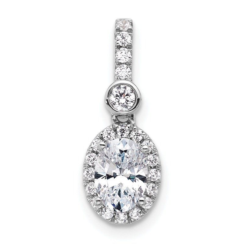 The 14k White Gold 14kw Lab Grown Diamond 0.75ctw Oval VS+ F+ Pendant radiates elegance and charm. Crafted from 14k white gold, this stunning pendant showcases a brilliant 0.75 carat oval lab-grown diamond. Its clean VS+ clarity and F+ color ensure it stan