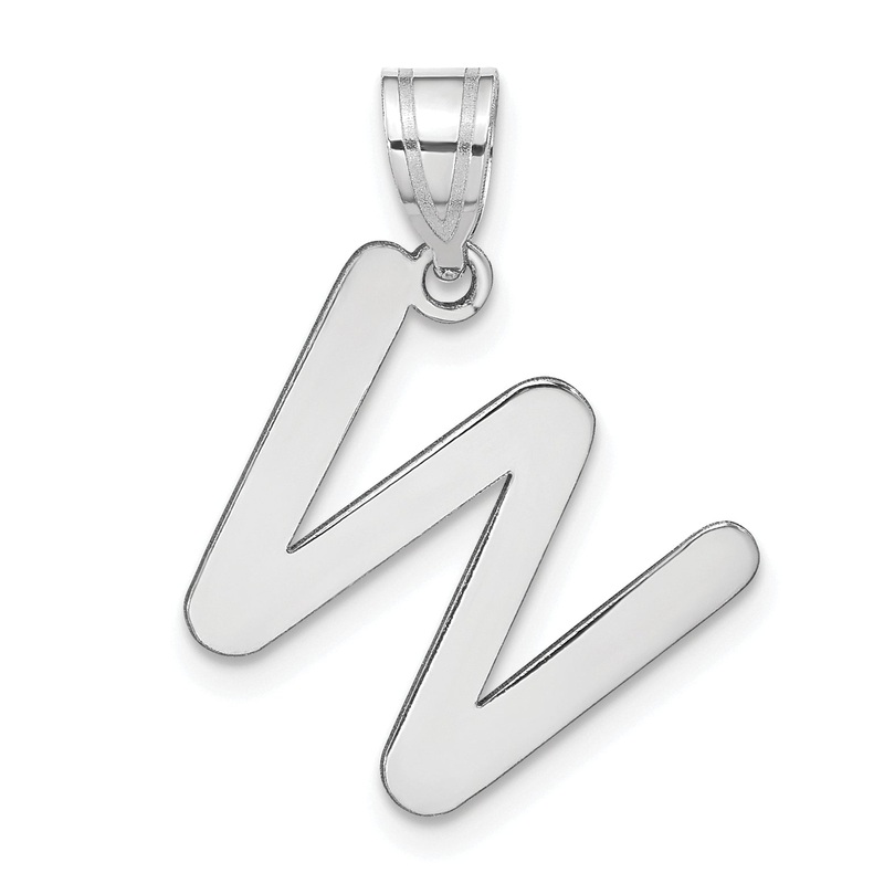 Introducing the 14k White Gold Polished Bubble Letter W Initial Pendant, a stunning piece that adds a personal touch to any outfit. Crafted from high-quality 14k white gold, this pendant is polished to a brilliant shine to catch the eye. The rhodium platin