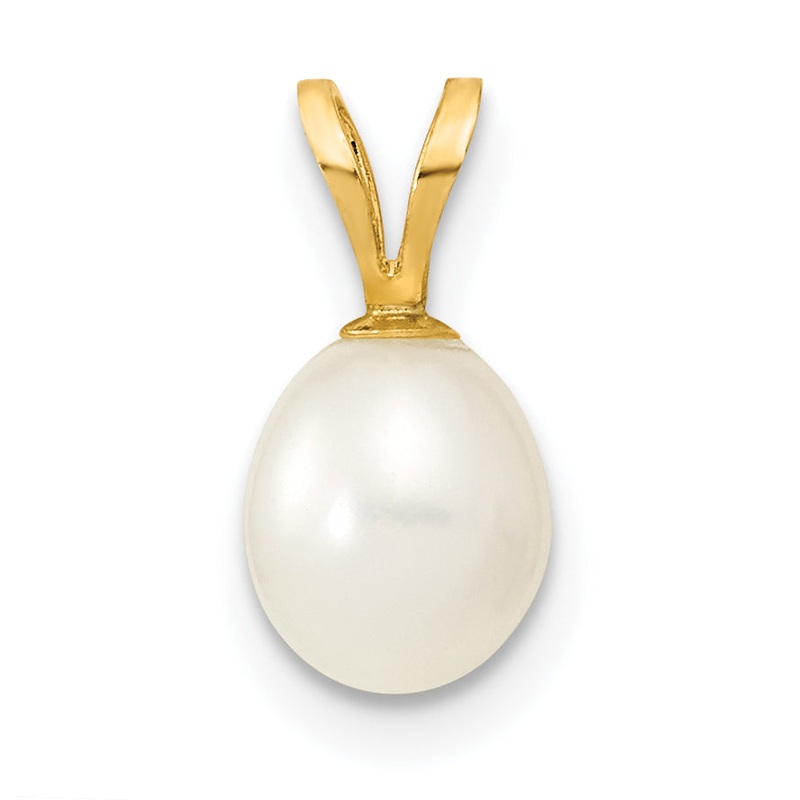 Introducing the 14k Yellow Gold 6-7mm White Rice Freshwater Cultured Pearl Pendant. This striking treasure is marked by genuine 14K yellow gold. The breathtaking pearl is the star of the show. It's a pure white, freshwater, cultured pearl. Fashioned into a