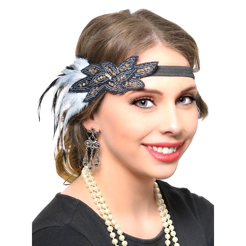 Everyone wants to look and feel glamorous in their 1920s costume so we recommend this black and white feather headpiece to achieve just that! This stunning flapper headband has soft feathers and intricate beads for a gorgeous Great Gatsby dress up look. So grab this Gatsby headband and add it to your 1920s dress for a captivating look.