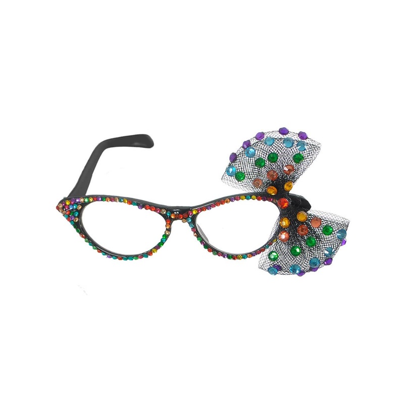 Straighten up your beehive, it is time to party like it is the 1950s! Set your sights on becoming a rock n roll sweetheart with the best cat-eye glasses in town. We hear everyone is heading down to the corner shop for some milkshakes if you wanted to join us? It sounds like you 50s theme fancy dress is going to be a real gas when you enhance your outfit with these rainbow rhinestone costume glasses! You’ve come to the right place for 1950s costume accessories, we can’t wait to see the finishing look! Have you got a dime for the jukebox? We want to practice our dance moves for the sock hop.Description: