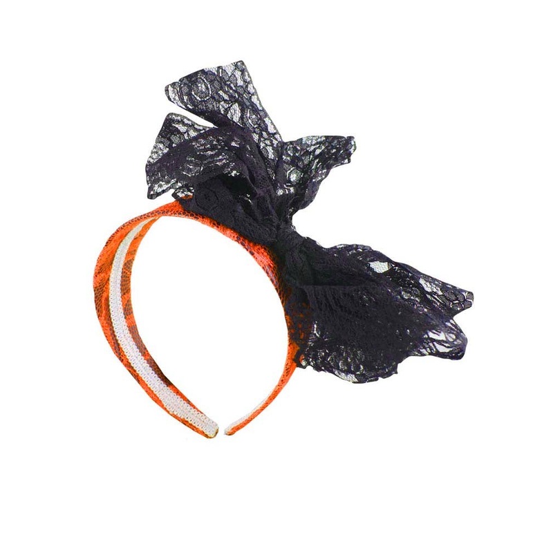 Be the first to review “80s Neon Orange Lace Headband with Black Bow”