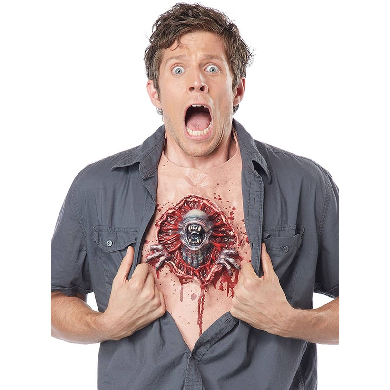 Alien Parasite Chest Piece Halloween AccessoryYou'll be a walking nightmare at your next Halloween costume party when you complete your horror fancy dress outfit with this terrifying alien chest piece! This bursting parasite wound latex chest piece will ma