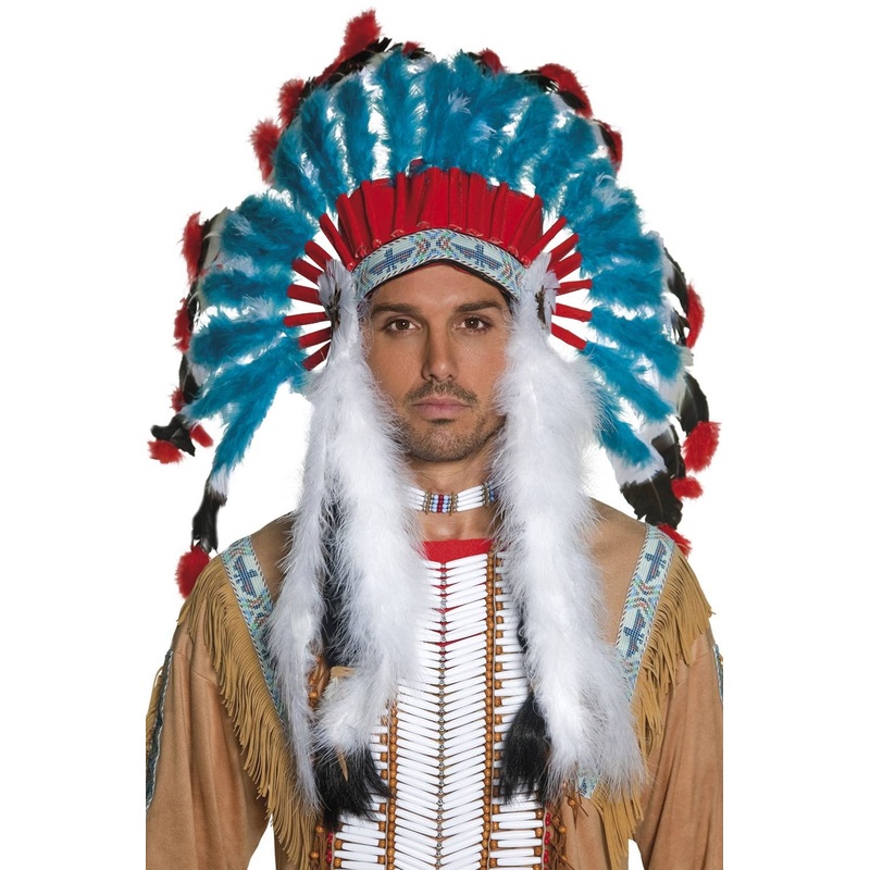 Blue Indian Chief Feather HeaddressLive like you're back in the wild west when you top off your adult's Indian fancy dress costume with this outstanding large feather Indian Chief headdress. A wonderful novelty headdress for Indian character stage props or