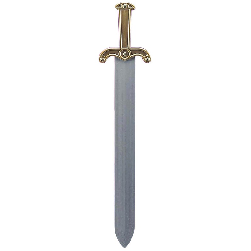Long Ancient Roman Costume SwordIncludes:SwordDescription:Sword is made from plastic with a silver painted blade.Handle is painted gold with circle patterns.Tips:Pair this toy sword with your Ancient Roman costume or gladiator outfit for the full look!