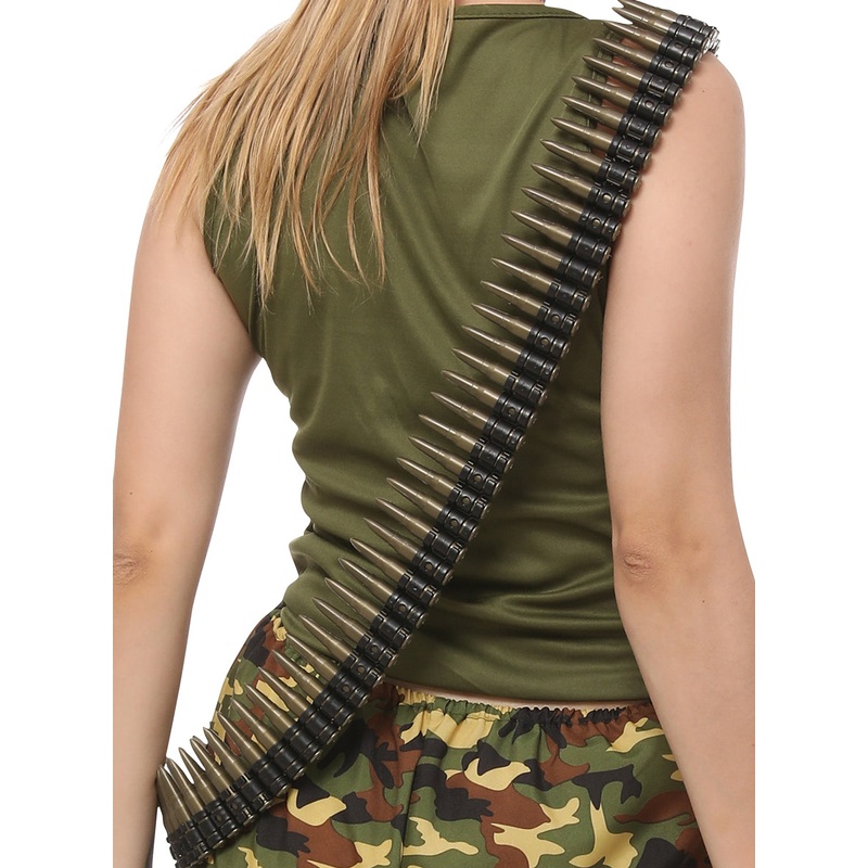 Novelty Army Solider Bullet Belt AccessoryAn army solider is not ready for battle until they have their bullet belt with them! This bullet belt costume accessory is great for your occupational themed event or to complete defence forces outfit!Description:B