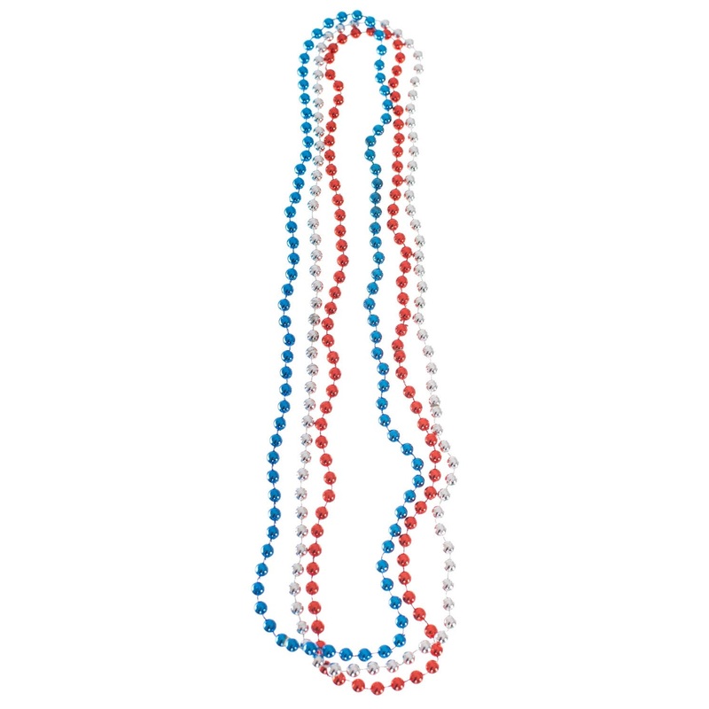 Red, Blue And Silver Beaded NecklacesIncludes:3 necklacesDescription:Beaded necklaces come in a pack of 3.Red, blue and silver colours are included.Necklaces are all individual.Beaded necklace styling tips:Your aussie dress up is not complete without the b
