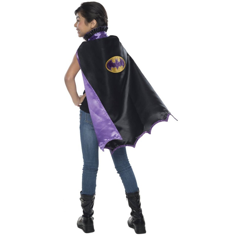 Black And Purple Batgirl Girls Cape AccessoryDress in this black and purple bat cape for your next superhero fancy dress party or book week parade, or ideal for a Movie and TV themed costume event! This officially licensed batgirl cape accessory is the per
