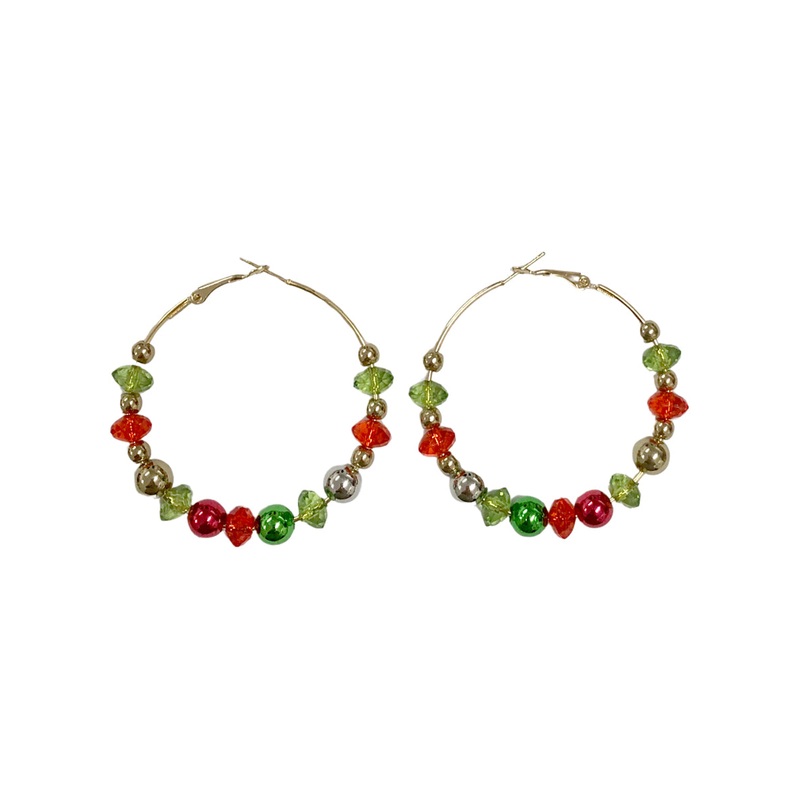 Festive Red and Green Beaded Christmas Hoop EarringsThese gorgeous beaded hooped earrings are perfect for adding a touch of holiday sparkle to any look! From dressed up nights out with friends to cosy dinners at home with family, these sparkling hoops will