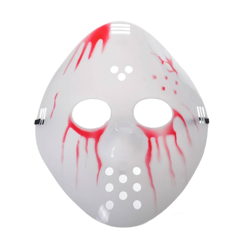 White Bloody Jason Hockey Mask AccessorySlash your way through your Halloween party as a Halloween slasher when you add this terrifying bloody hockey mask to your fancy dress outfit. This hockey mask is the perfect Halloween costume accessory to use with y