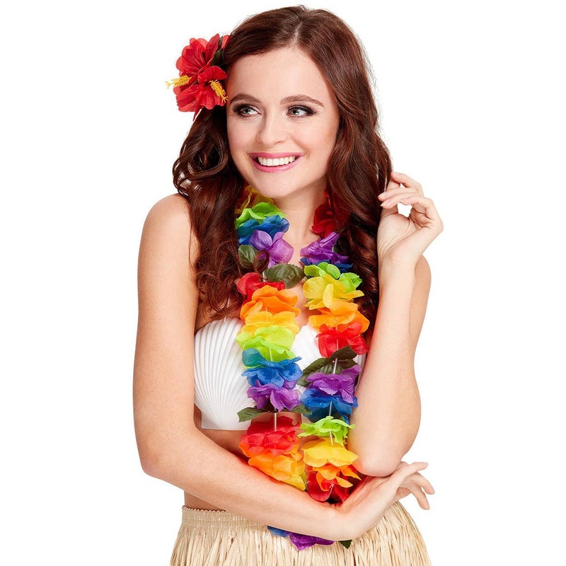 Become a summery and cute hula girl when you add this rainbow flower lei made by Smiffy’s to your fancy dress outfit. This rainbow lei is the perfect costume accessory to make your Hawaiian hula girl outfit look complete.