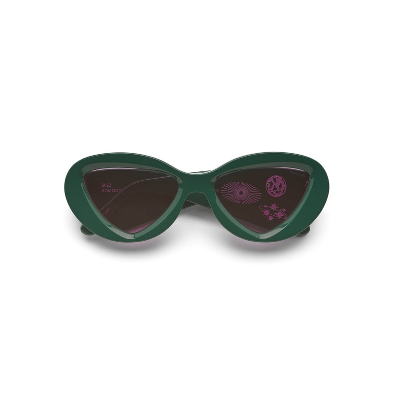 Inspired by the 60s space designthink retro TVs, chairs, and more,the Buzz frames captures that pioneering spirit with its edgy triangularlenses and bold temple design.Funfact 1: the vintage TV that inspiredthis collection makes a cameo in ourcampaign imag