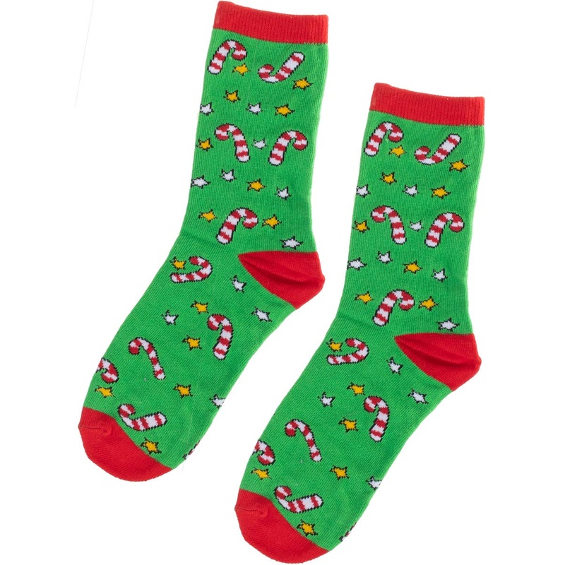 Green Candy Cane Printed Christmas Socks with Red TopsTake a walk down Candy Cane Lane with the best Christmas socks to suit the theme. These jolly socks are green with candy canes and stars printed all over and will be a delightful Christmas accessory to