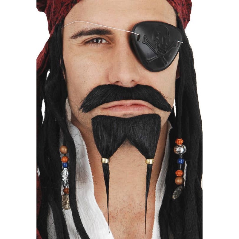 Pirate Beard and Moustache Set in BlackArrrrrrr you ready to walk the plank? No pirate costume is complete without a beard and moustache to suit! This fake black beard set is the perfect accessory to top off your pirate fancy dress outfit... also perfect f