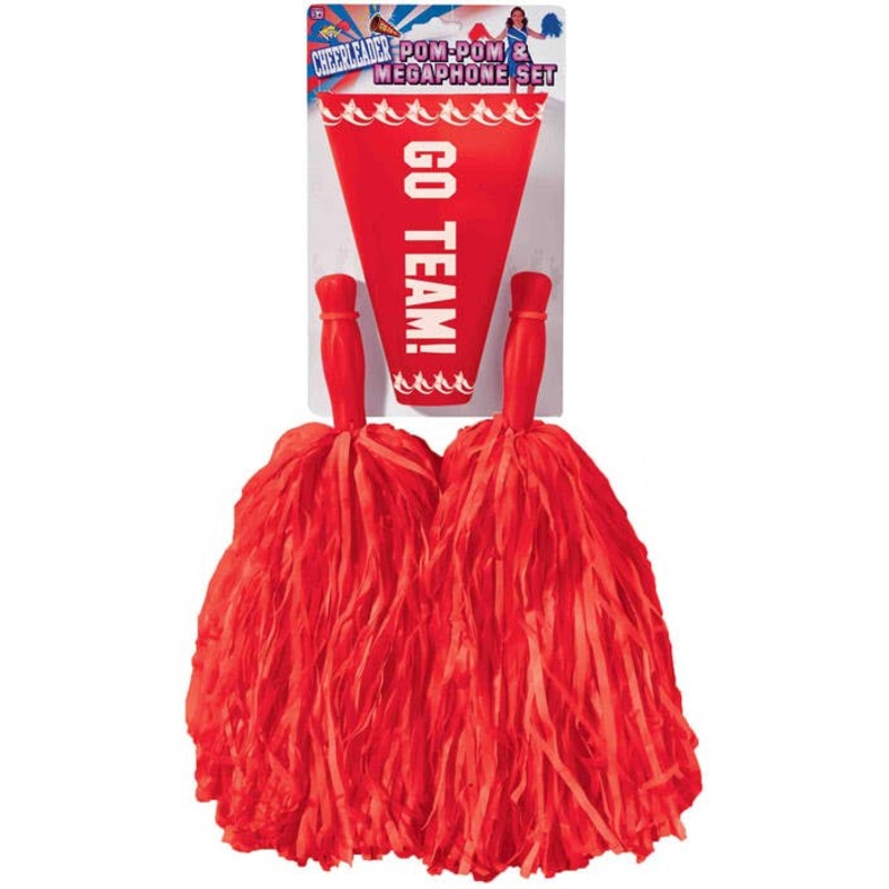 Cheerleader Red Pom Poms and Megaphone Costume SetBe seen and heard at your next school sports themed 'Ra-Ra' cheerleading costume party by adding this cool red pom pom and megaphone costume accessory set to your sexy cheerleader fancy dress costume.Descri