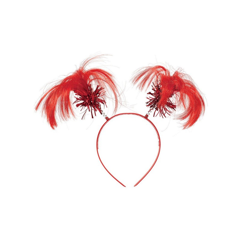 Red Ponytail Costume HeadbandIncludes:HeadbandDescription:Headband made from red plastic with two springs attached to the top.Attached to the end of each spring is some red tinsel and red synthetic hair.One size fits most.Styling your ponytail headband:Fin