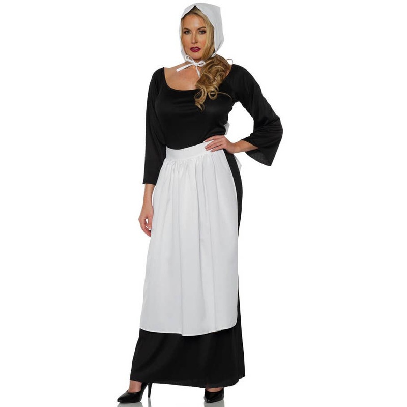 Assembling a colonial-era costume for a fancy dress event? This bonnet and apron accessory set is the perfect finishing touch! When paired with a simple colonial-style dress, you’ll resemble an authentic pilgrim woman – just steer clear of any witchcraft accusations!