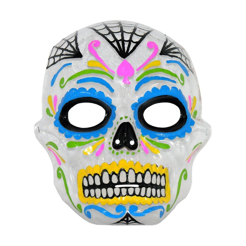 Makeup skills not up to scratch? No stress! You can still achieve that traditional sugar skull look for your Dia De Los Muertos celebrations with this multi-coloured transparent sugar skull costume mask! Check out our other Day of the Dead costume accessories to complete your outfit!