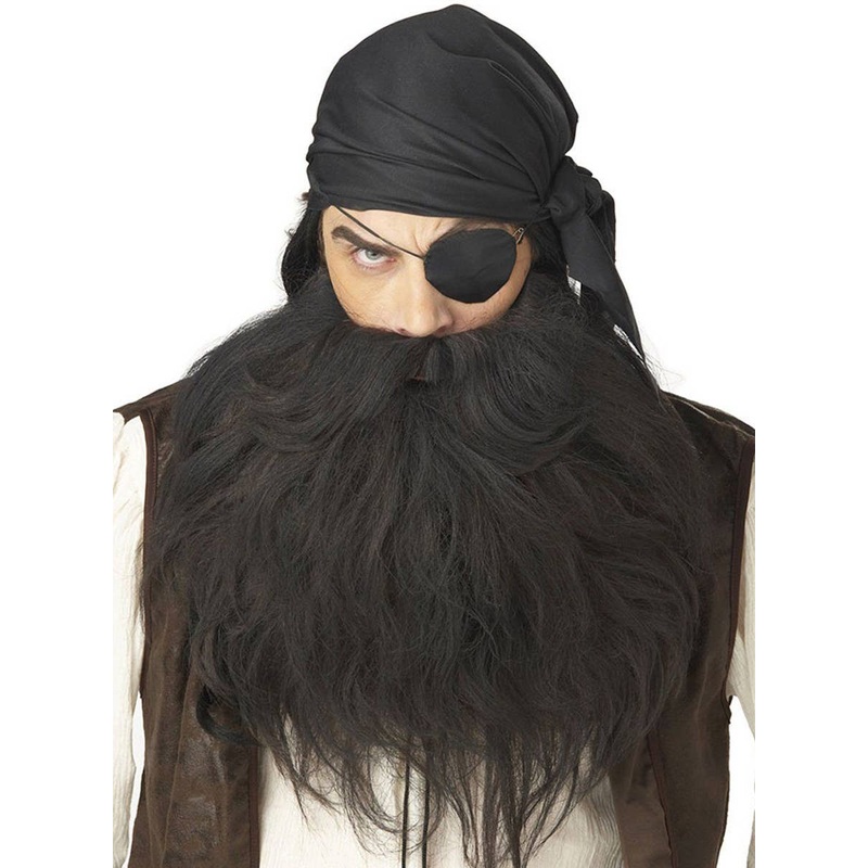 Deluxe Black Pirate Beard and MoustacheThis deluxe adults fake black pirate beard is perfect to complete your plundering Black Beard the Pirate fancy dress costume. Whether you're heading to a pirate and wenches costume party or looking to add to your book