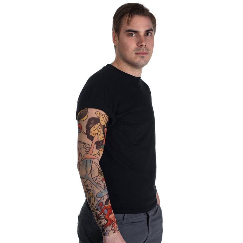 The perfect pain free solution, this novelty fake tattoo sleeve will give you some really wicked ink! This fake tattoo sleeve for your arm is a very cool costume accessory to add to a wide range of fancy dress outfits. Finish your 80’s outfit, Gothic and punk, biker or Halloween costumes with this full length devil girl tattoo sleeve.