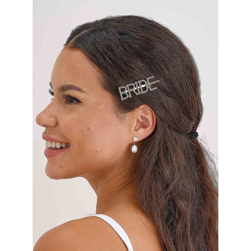 Hen Party Diamante Hair ClipDescription:Gold metal hair slideSlide says 'BRIDE'It has sparkly diamantesTip:Spoil your bride to be with this cute bride hair clip on her hens night!