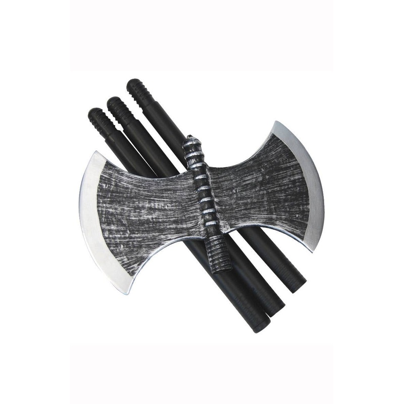 Medieval Executioner's Axe Costume AccessorySend a foreboding chill through everyone's collective spines when you wield this double headed executioner axe at your next Medieval fancy dress party! This black and silver collapsible costume weapon is also a p