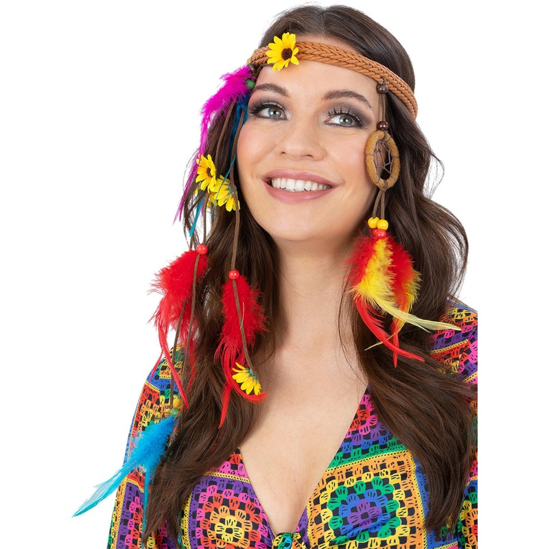 Dreamcatcher And Feathers Womens 60s Hippie Costume Headdress