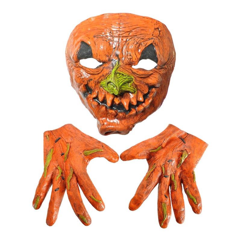 Adult's Rubber Latex Evil Orange Pumpkin Face Mask with GlovesThis scary costume mask comes complete with matching gloves, making it great for any Halloween enthusiast who wants to put some fear into their fellow party-goers on Halloween night. Its special
