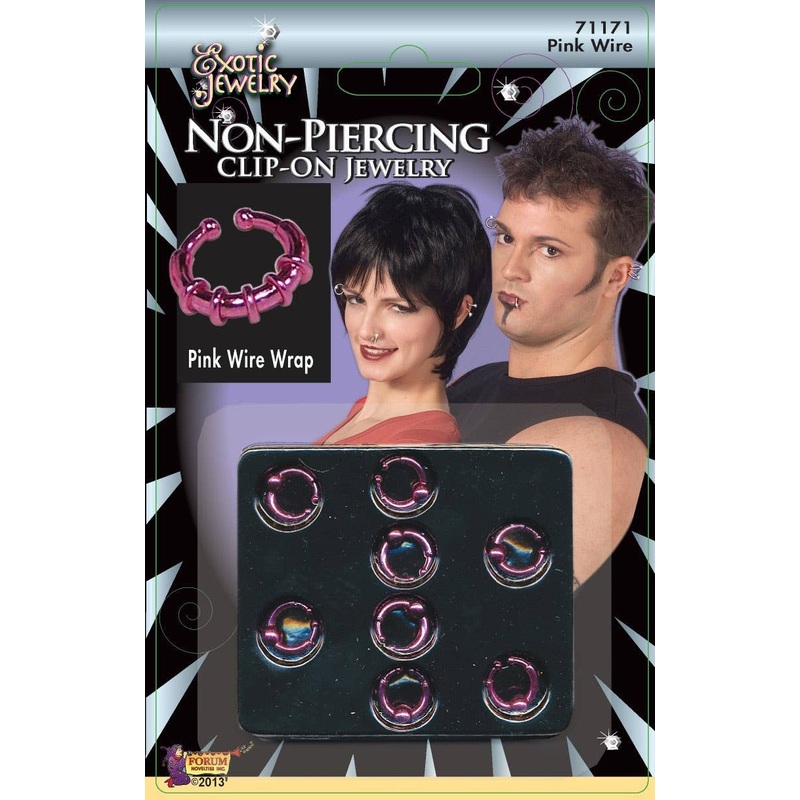 Looking to complete your perfect punk glam look? These pretend piercings are the ideal accessory to add to your your 80’s costume or punk dress up outfit! Get the piercing look without the pain with these non-piercing pink clip on rings.