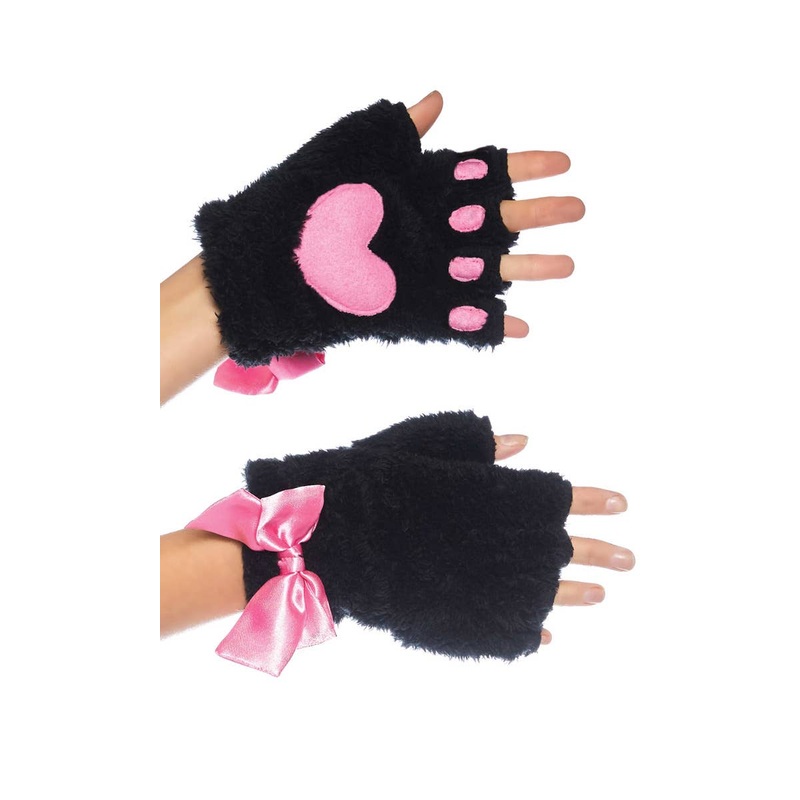 Black and Pink Plush Kitty Cat Fingerless GlovesGet ready to purr with style! Complete your sexy kitty costume with these super soft, plush black and pink costume gloves. Keep your hands cozy and cute as you prowl around your next animal-themed fancy dress