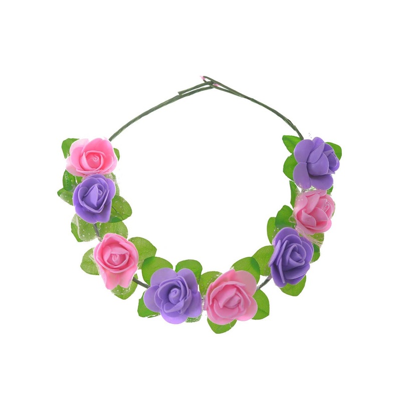 Pink and Purple Flower CrownThis ethereal headband is the perfect finishing touch to any fairy costume! It's adorned with delicate pink and purple flowers, adding a touch of magic and enchantment. You'll feel like the belle of the ball in this show-stoppin
