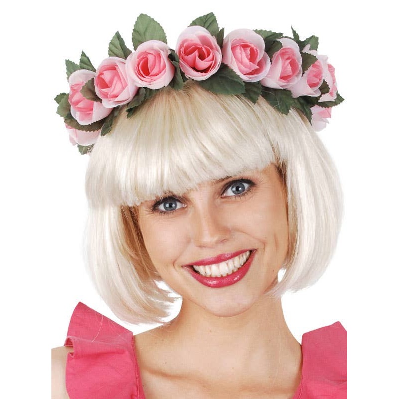 Pink Rose Flower Crown Hair AccessoryThis pretty pink flower headband is a perfect finishing touch to your Day of The Dead or Renaissance fancy dress costume. Add a splash of pink colour to any outfit with this costume headband!Description:Green plastic cr