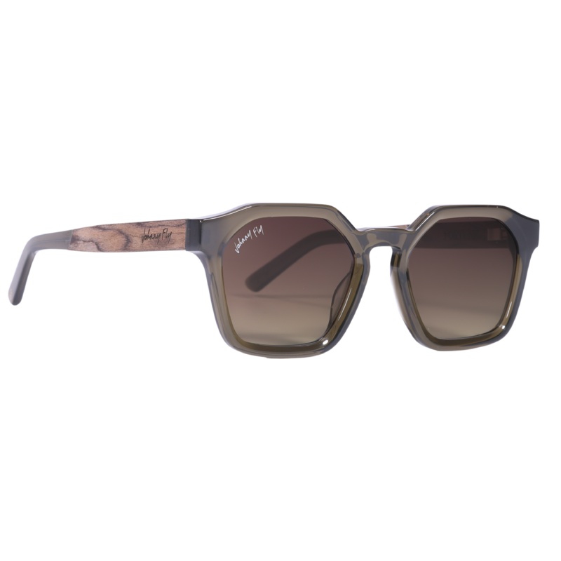 This cutting edge design features our concave cut design, created with an acetate front section, layered wooden arms, and spring hinges that make them Johnny Fly.