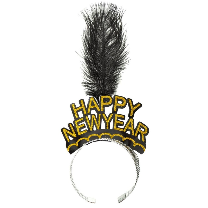 Gold Happy New Year Headband with FeatherWelcome in the New Year with some fun NYE novelties like this glittery gold headband! Crafted from crimped foil, this costume headband will sit just right! So what are you waiting for? Get ready to count down wearin