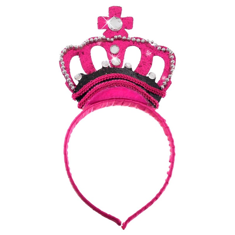 Sparkly Hot Pink Jewelled Crown HeadbandRule over your next fairytale themed costume party as a beautiful princess when you create your own royal princess costume wearing this hot pink glitter crown headband. The perfect costume headband to complete your r