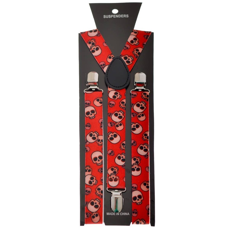 Red Skull Print Halloween Suspenders Accessory