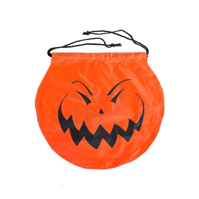 Pumpkin Trick or Treat BagHave plenty of room for candy this Halloween with this bright orange Jack O Lantern lolly bag. This high quality orange fabric bag is perfect for your next Trick or Treating adventure!Description:Orange parachute fabric lolly bag.