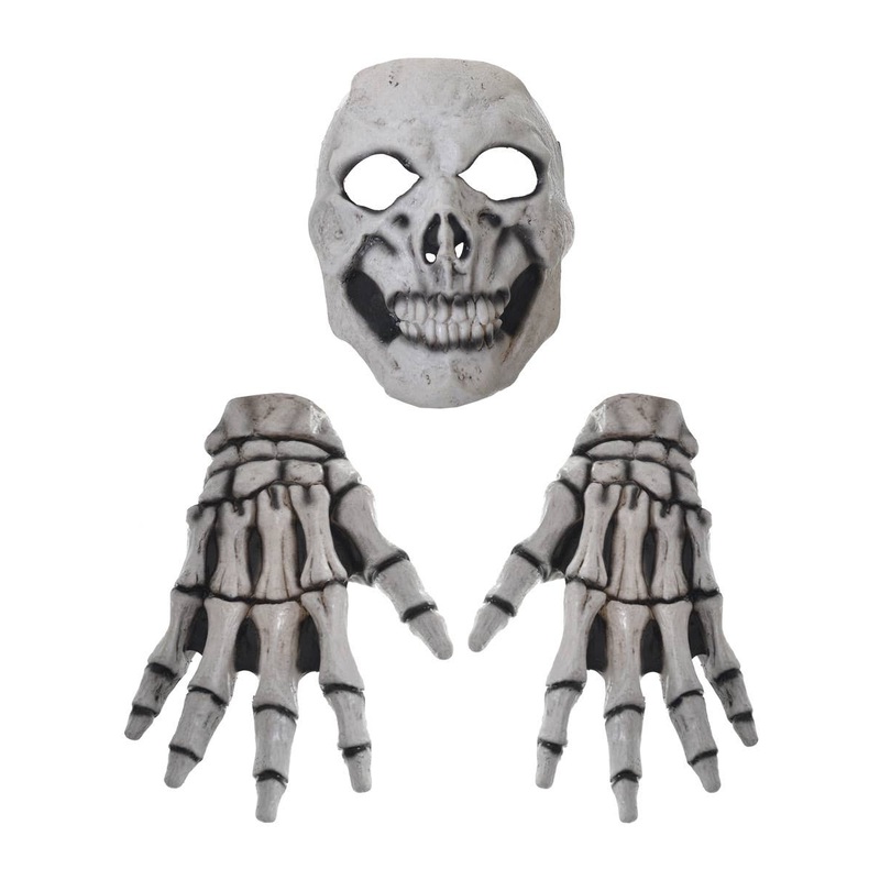 Skull Mask and Skeleton Gloves Costume Accessory SetIf face painting is not for you and you want a skeletal look that is going to last this skull mask and skeleton hand gloves set is the Halloween costume accessory set for you! There is no better way to cr