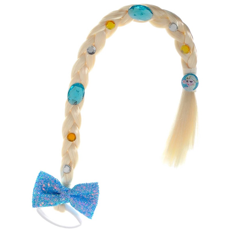 Complete your little ones Ice Queen fancy dress outfit with this long blonde ponytail braid! Simply tie this costume accessory into her hair with the attached hair tie and you’re done! This bejewelled braid is perfect for wearing to a movie Princess themed dress up event.