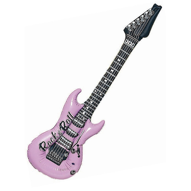 Pack of 4 1980s Inflatable Instrument PropsIncludes:2x GuitarsSaxophoneMicrophoneDescription:Inflatable instruments are made from plastic material.Each instrument has an inflation valve.Guitars are red and purple.Printed on the front of the guitar is "Rock