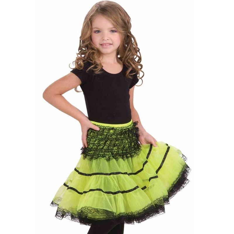 Green and Black Girls Costume UnderskirtThis green and black petticoat for girls is absolutely perfect for adding a touch of flair to your little one's costume. It serves as a fantastic addition to complete their 80s themed costume, or alternatively, it ca