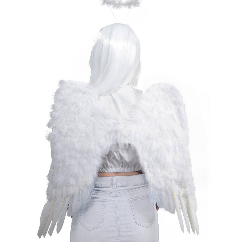 It is always nice when an angel drops by; we hope the trip wasn’t too long! We can see why there may be confusion, we’re Heaven Costumes not the heavenly kingdom in the sky but we’ll talk to management about getting cloud chairs, they sound comfy! We can see that you need costume wings to make the journey home and we have what you are looking for! These large angel wings are adorned in white feathers and will be an ethereal finishing touch to any angel fancy dress outfit. Now you have your white wings sorted, you’re ready to soar into your next devils and angels party or Christmas event, and we must say, you look positively divine!
