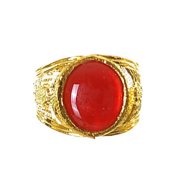 Large Gold Costume Ring with Red JewelDo you want to look blinged up? Attend your next dress up party all blinged up when you add this red and gold costume ring to your outfit. Perfect to finish off a variety of themed dress up looks, this large gold ring