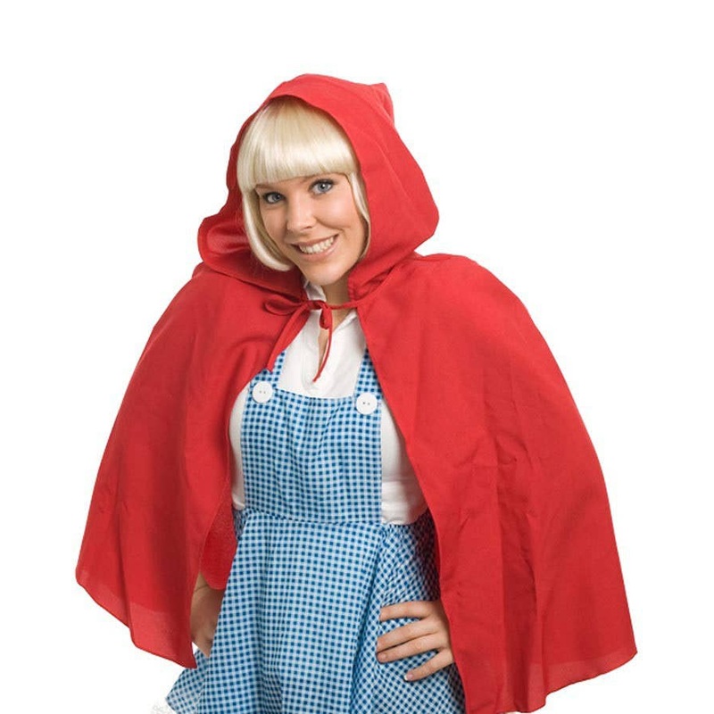 Hooded Red Costume CapeDon't forget to fill your little basket up with goodies for grandma! Set out on a woodsy adventure for your next fairytale themed fancy dress party with this hooded red costume cape. This red cloak will make your Red Riding Hood cost