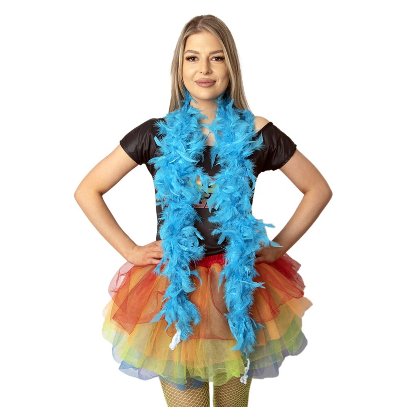 150cm Long Blue Feather Boa AccessoryIncludes:BoaPlease note: top, skirt and stockings are not included.Description:150cm long full feather boa in blue.Made from real feathers.The approximate weight of each boa is 50grams.Feather boa styling tips:Complete