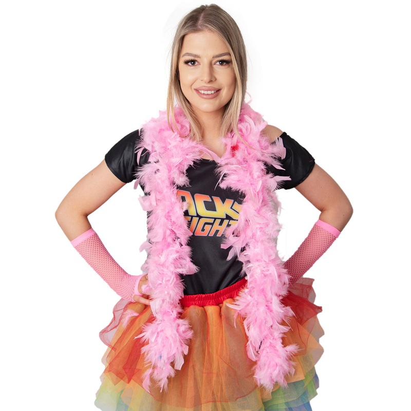 150cm Long Light Pink Feather Boa AccessoryIncludes:BoaPlease note: top, skirt and gloves are not included.Description:150cm long full feather boa in light pink.Made from real feathers.The approximate weight of each boa is 50grams.Feather boa styling tips: