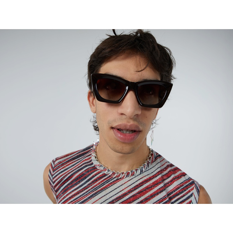 For his first venture into eyewear, Tom Eerebout distills the glamorous aesthetics of the red carpet into a pair of cat eye frames that can be worn by both men and women. Made from sustainable materials, the design is timeless yet distinct enough to be worn as a signature statement. His inspiration for the first drop came from a Buddy Holly and Waylon Jennings 1959 image, in which the two musicians pose and joke around in a photobooth in New Yorks Grand Central station. The campaign recreates this moment of spontaneity and celebrates friendship in its purest form.