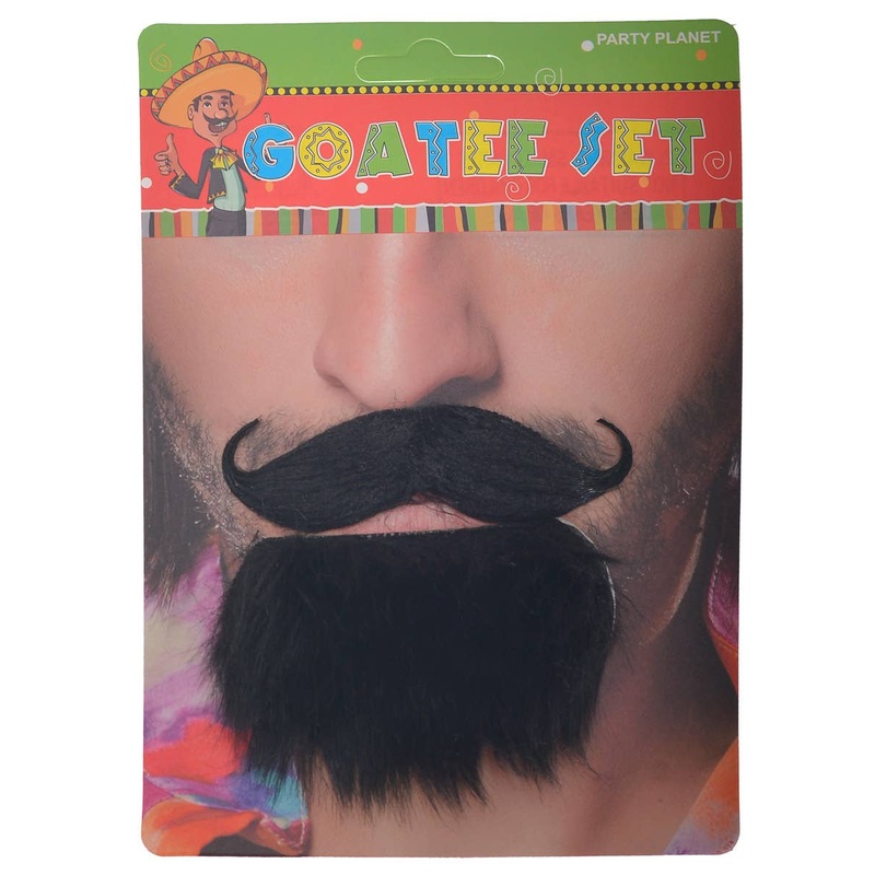 Mexican Moustache and Goatee Accessory SetThis self-adhesive moustache and goatee are easy to apply, and they stay in place all night long. Whether you're dressing up as a famous mustached man, or you just want to add some facial hair to your costume, this