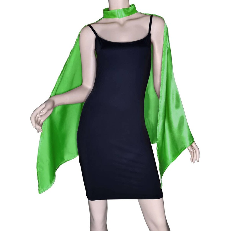 Wide Neck Band Satin Mid Length Green Costume Cape